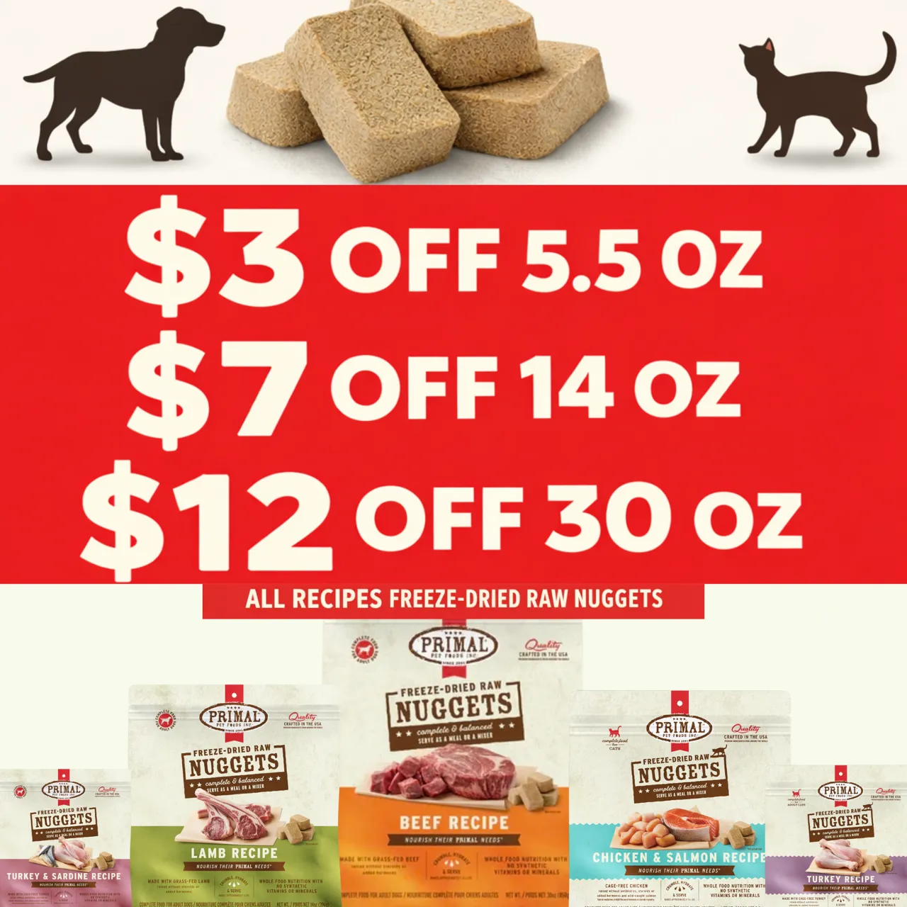 Buy any (3) 1lb and/or 4x1/4lb Frozen Raw Dog or Cat Meals, Get a select FREE Frozen Raw Bone!